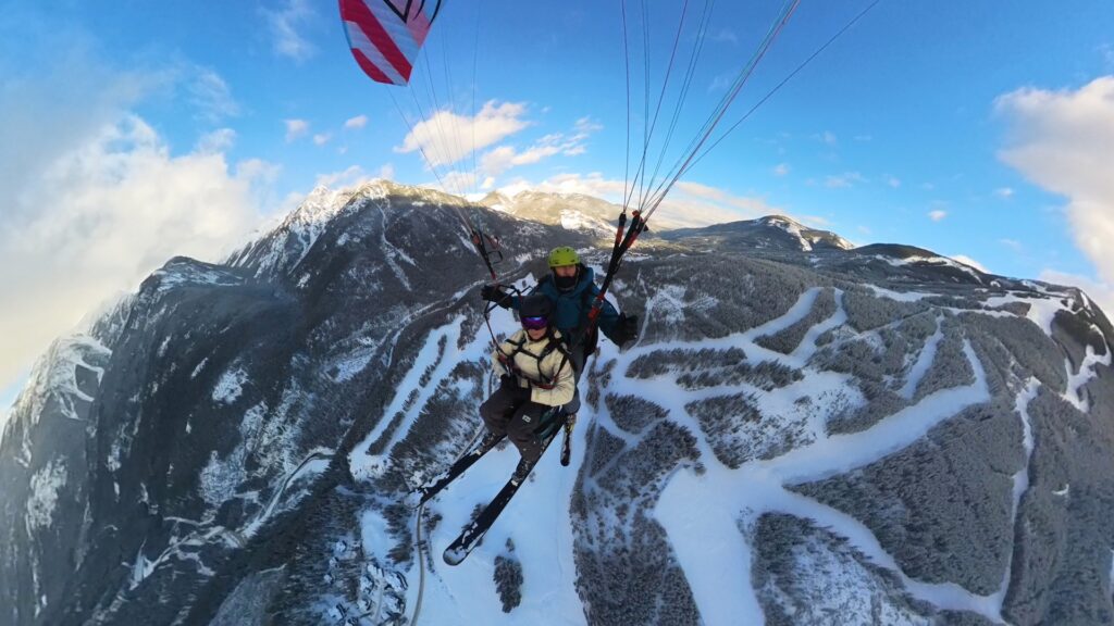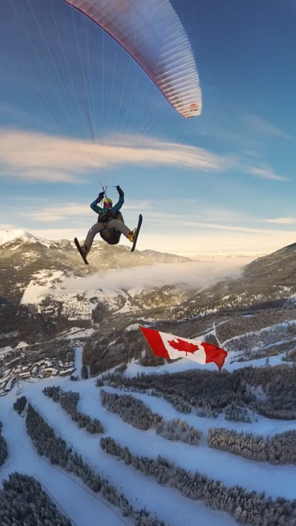 I even managed to get back into the sky on NewYyears day at Panorama Mountain Resort for a couple of tandem flights, proudly flying the Canadian flag.