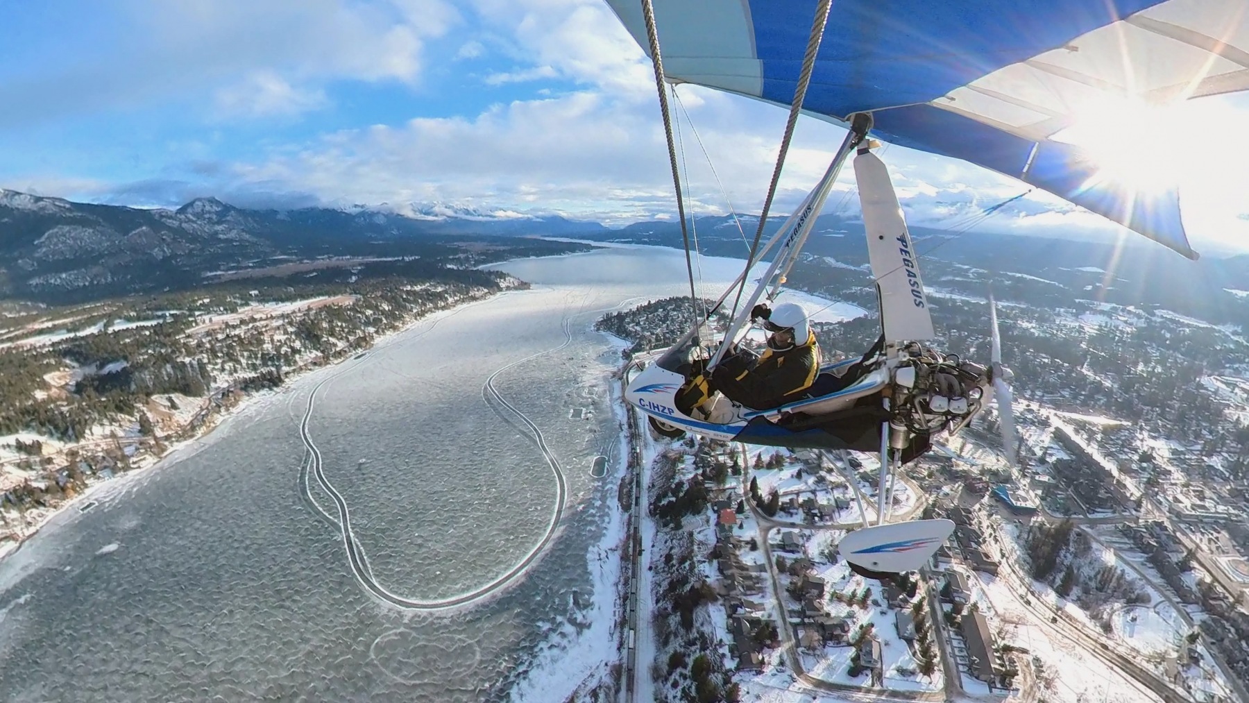 Flying over frozen Lake Windermere