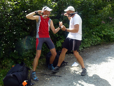 cloud base in Germany, so we drove 25 minutes to Hahnenkamm by Reutte. The thermals started week, but we got some great flights right (up to 2.5 hours) right to cloud base and into the Tanheimmer tal and back. After some good bratwurst, beer and schnaps we headed to the Neunerkoepfle im Tanheimer tal. The gondala was already clsoed and we headed via the Oberjoch pass to Sonthofen for Coffee and beer. After this we picked up Penny from Kempten and drove to the Sudhaus for dinner. The Sudhaus is a micro brewery with a rustic restaurant for local food. The evening went from a dinner to a singing party with another group. Too bad I did not video the songs everyone was singing.